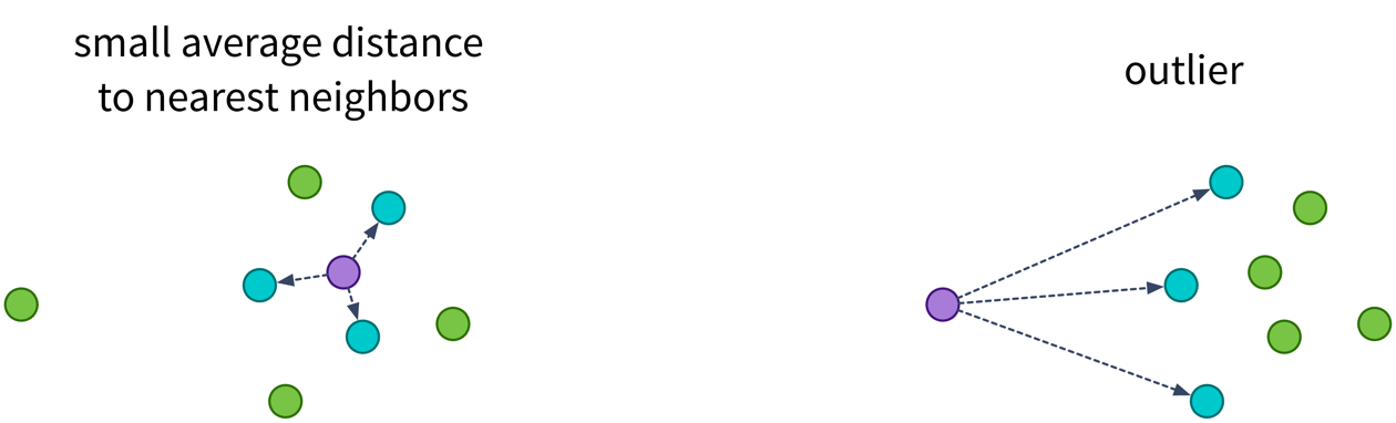 ⇒ Set a threshold for the average distance when a point is considered an outlier.