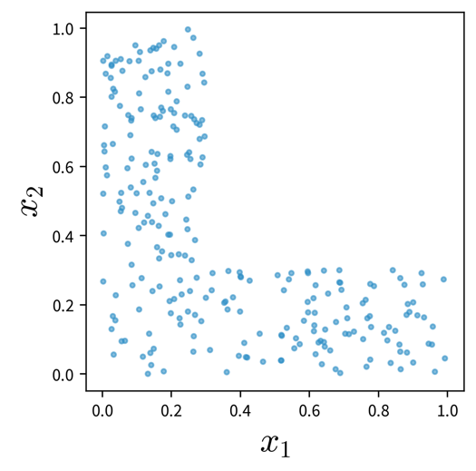 If the two features and their effect on the target are independent of each other (e.g., \(y = ax_1 + bx_2\)), this is not too dramatic, however, if these variables interact in some complicated nonlinear way, this might not be modeled correctly when relevant combinations of feature values weren’t sampled.