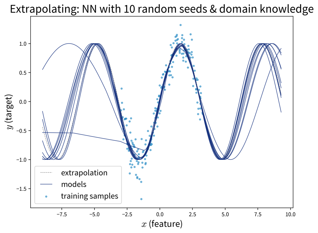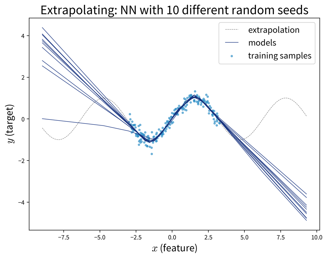 While this does not ensure that the model has actually learned any true causal relationship between inputs and outputs and can extrapolate beyond the training domain (we’ll discuss this in the next section), at least we can be reasonably sure that the model will generate reliable predictions for data points similar to those used for training the model. If this isn’t given, the model is not only wrong, it’s also useless.