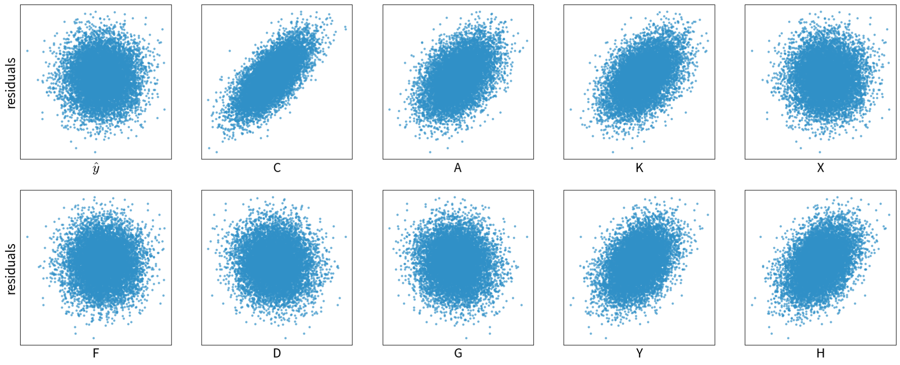 \(\hat{y} = b + \sum_{k=1}^d w_k \cdot x_k\) ⇒ effect of feature k for ith data point: \(w_k \cdot x_k^{(i)}\):