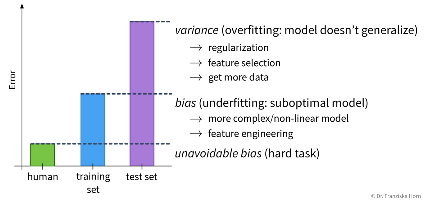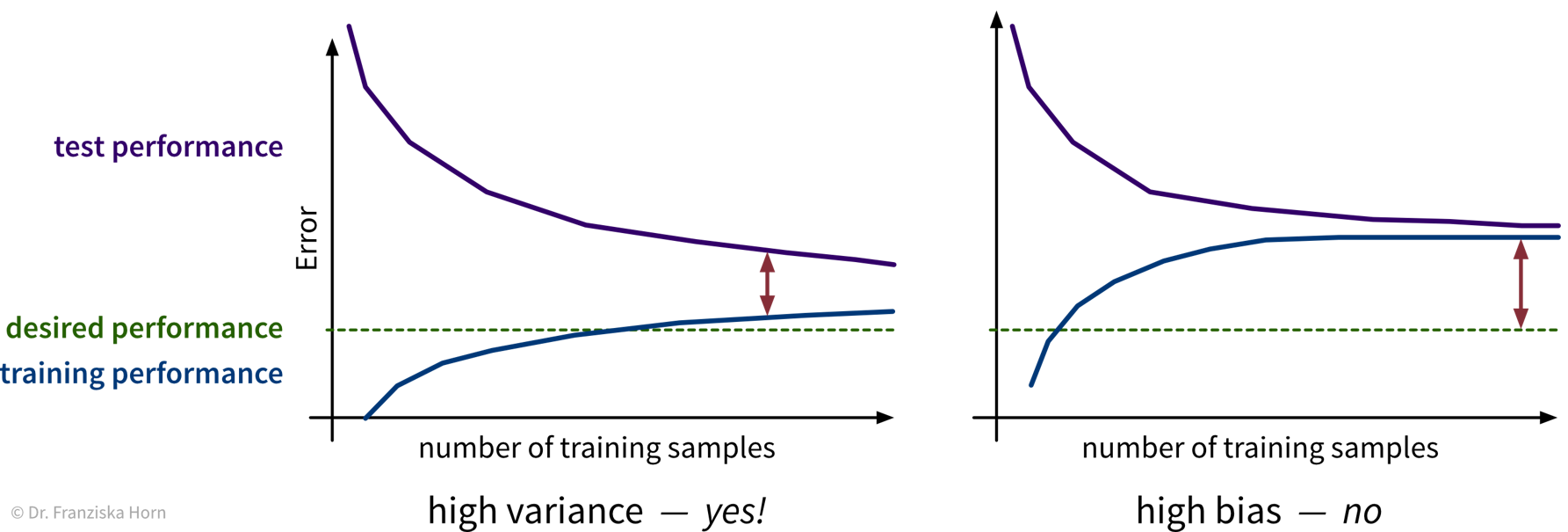 - Sanity check: Does the dataset contain samples with the same inputs but different outputs? ⇒ Some important features might be missing or the targets are very noisy, e.g., due to inconsistent annotations – fix this first!