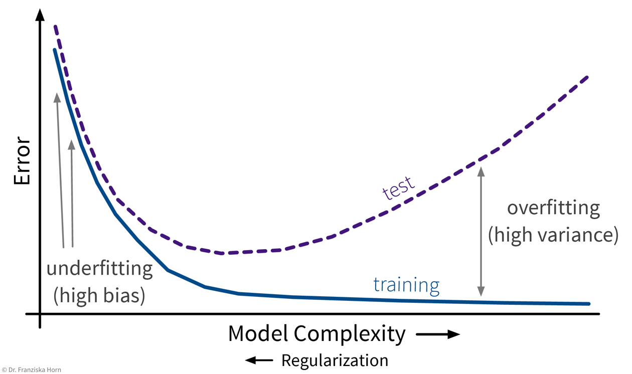 So, why does a model make mistakes on new data points? A poor performance on the test set can have two reasons: overfitting or underfitting.