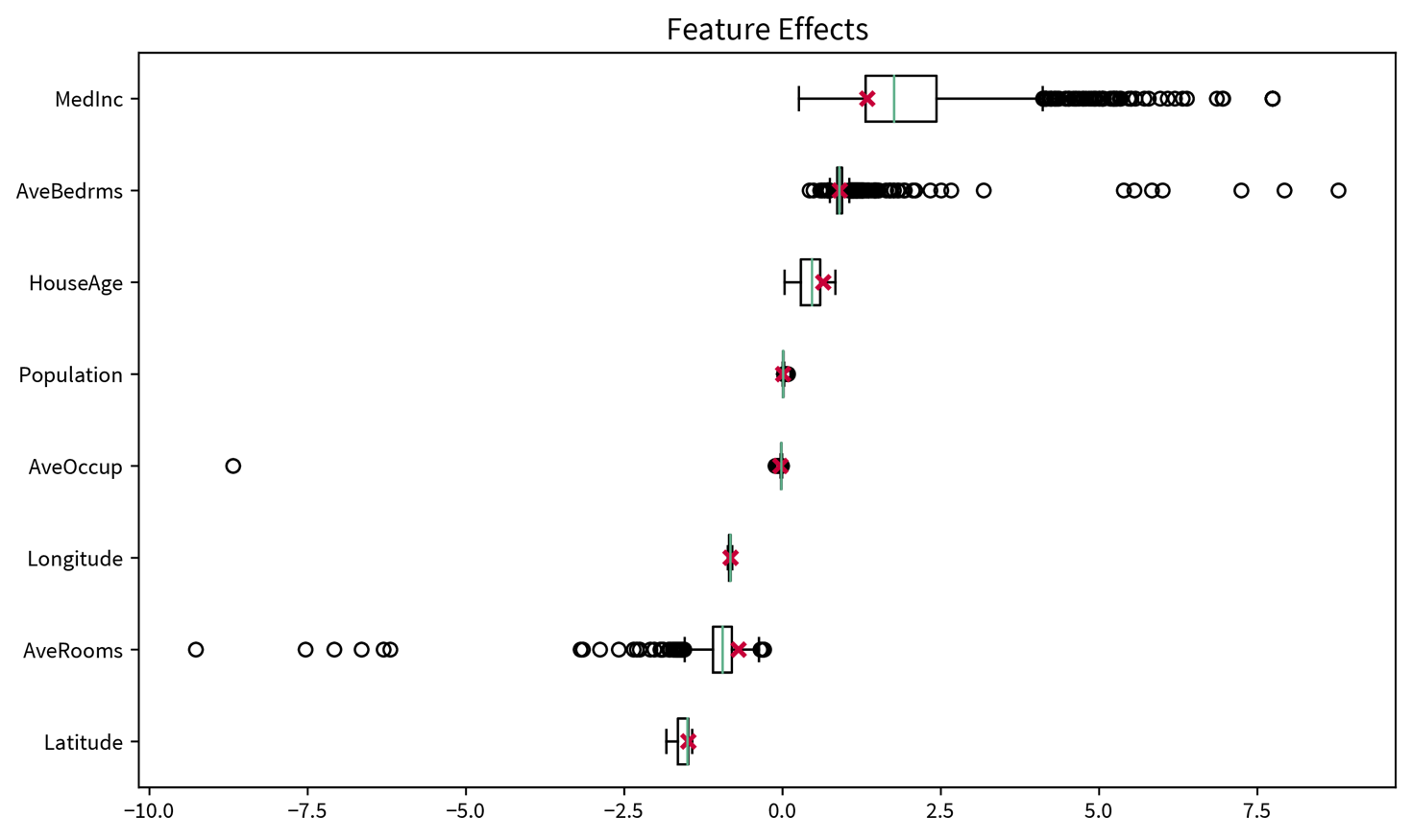 For torch networks, this approach is implemented in the captum library as the ‘Input X Gradient’ method. The library also contains many other methods for interpreting neural networks, however, I find this the most natural approach, since it is a direct extension of the intuitive feature effects approach used to interpret linear models.
