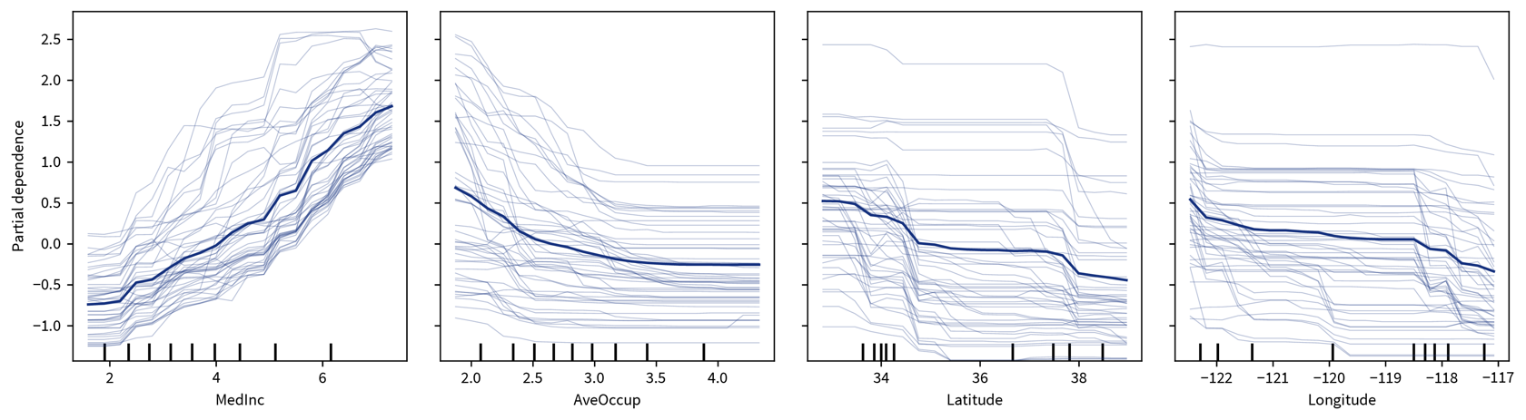 However, by examining the ICE plot for possibly erratic changes for individual samples, this can usually be spotted. And in general – this goes for all explainability methods – the results should not be over-interpreted, i.e., they are good for showing rough trends, but remember that the plots might also look completely different for a different type of model trained on the same dataset, i.e., be careful before concluding anything about the root causes of a problem based on these results.
