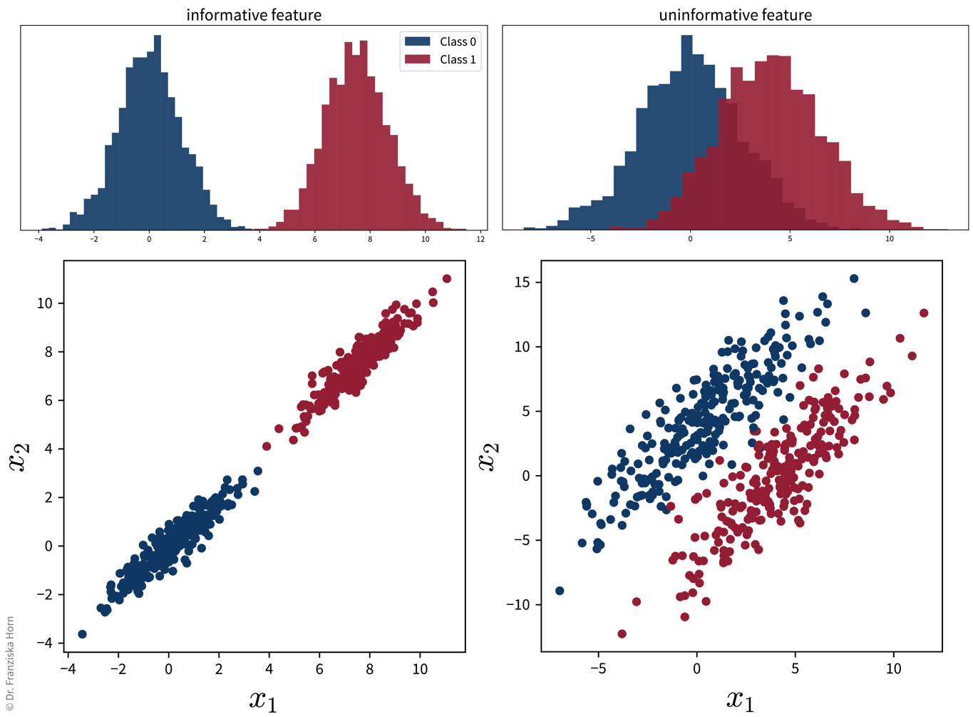 ⇒ Exclude irrelevant features to avoid overfitting on the training data. This is especially important if the number of samples in the dataset is close to the number of features.