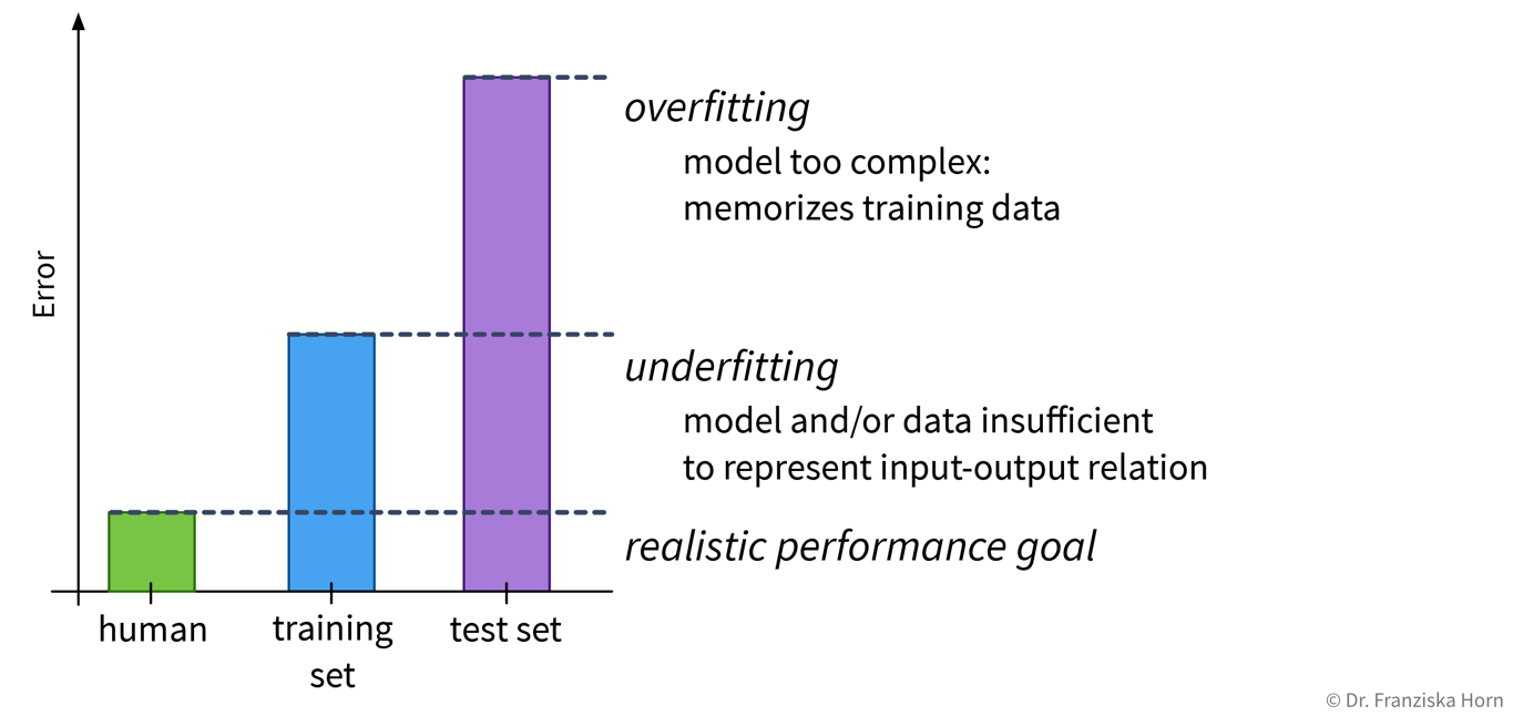 So, why does a model make mistakes on new data points? A poor performance on the test set can have two reasons: overfitting or underfitting.